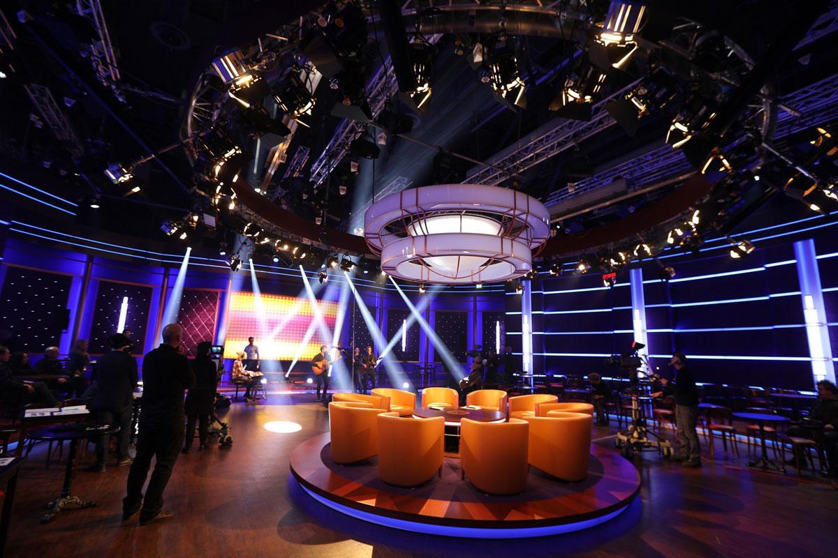 The studio is currently divided into two sections due to the installation of the TV set for the MDR talk show “Riverboat”: